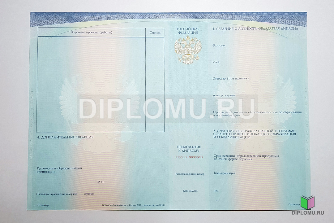 • Комплект: Диплом + твёрдая обложка + приложение